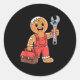 Pegatina Redonda Gingerbread Mechanic Handyman Fixer Worker Christm