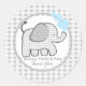 Adorable elefante de patrón de damas de gingham gris con orejas de punto de polka y corazones azules. Añade favores y da las gracias a los invitados por asistir.