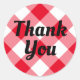 Pegatina Redonda Gingham rojo y blanco Gracias