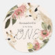 Pegatina Redonda Giraffe Chica Floral Rosa Primer cumpleaños