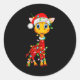 Pegatina Redonda Giraffe Christmas Lights Santa Costume Cute Animal