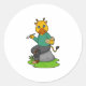 Pegatina Redonda Giraffe como pintor con pincel de pintura