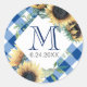 Esta etiqueta de agradecimiento fue diseñada para coordinar con la colección de girasoles y cuadros de VG Invites en azul y amarillo. Perfecta para bodas de BBQ de I do. Personaliza con tu monograma, inicial del apellido y la fecha de tu evento. Para ver más diseños rústicos de barbacoa de verano como este, visita www.zazzle.com/vginvites