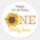 Pegatina Redonda Girasol Rústico Cumpleaños 1