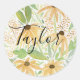Pegatina Redonda Girasoles Acuarela, Arte Botánico
