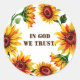 Pegatina Redonda Girasoles en Dios confiamos en la cita