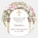 Pegatina Redonda Girl First Communion Pink Florals Arch Cross