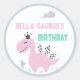 Pegatina Redonda Girly Dinosaur A-Roar Fiesta de Cumpleaños