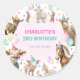 Pegatina Redonda Girly Farm Animals Confetti Balloon Birthday