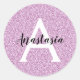 Pegatina Redonda Girly Glam Purpurina púrpura esparkles Monograma N