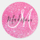 Pegatina Redonda Girly Glam Purpurina rosa caliente Esparkles Monog