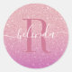 Pegatina Redonda Girly Ombre Purpurina rosa morado Monograma nombre