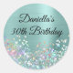 Pegatina Redonda Girly Pale Turquoise Relieve metalizado Holo Purpu