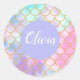 Pegatina Redonda Girly Pastel Ombre Purpurina de Oro Monograma de S