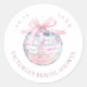 Pegatina redondo con ducha de novia con una brillante bola de disco con un arco rosa claro y fuentes elegantes en las que se escribe toda su información personalizada. Puede encontrar productos coincidentes de esta colección en nuestra tienda.