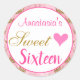 Pegatina Redonda Girly Princesa Purpurina de oro rosa dulce diecisé