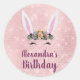 Pegatina Redonda Girly Rubor Pink Easter Bunny Birthday Party