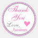 Purpurina morado de grisona y glam lila enciende a la princesa "Gracias" pegatina redondo clásico con elegante escritura rosa y gris. Puede añadir fácilmente el nombre de su elección y cambiar el color y el tipo de letra utilizando la opción personalizar.
