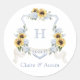 Pegatina Redonda Giros girasoles azul agitado hidrangea sobre Escud