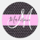 Pegatina Redonda Glam Black Metallic Pink Honeycomb Monograma Nombr