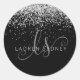 Pegatina Redonda Glam Black Silver Purpurina Monograma Nombre