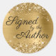 Elegante caligrafía "Firmado por el Autor" tipografía pegatinas promocionales para autores románticos en la firma de su libro. Girly imita a un purpurina dorado brillante en el borde superior e inferior con brillo extra sobre un falso Relieve metalizado oscuro de estilo metalizado amarillo dorado cepillado. Personalizar el color negro o el estilo de fuente de este elegante estilo de texto moderno. Todo el glamur de niñas se crea con gráficos de arte digital y es un efecto impreso.