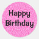 Glam Happy Birthday, pegatina redondeado clásico con un purpurina rosado caliente, respira fondo y negrita escritura negra. ¡Perfecto para una fiesta de cumpleaños de niñas!
