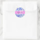 La sirena iridiscente glam y girly esbala fondo en tonos azules, plateados y melocotón con un nombre en monograma blanco y un primer pegatina redondo clásico. Su nombre personalizado y su monograma están escritos en un guión elegante con letras a mano con un fondo rosado. Puede cambiar el color del texto y el estilo y el tamaño del tipo de letra mediante la opción personalizar.
