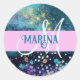 Pegatina Redonda Glam Mermaid Aqua Gold Purpurina Esparkles Monogra