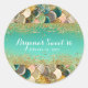 Pegatina Redonda Glam Mermaid Gold Verde azuladas escalas Cumpleaño