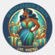 Pegatina Redonda Glamorosa mujer negra festividad Navidades elegant