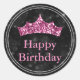 Pegatina Redonda Glamoroso Purpurina Rosa Crown Black Bokeh cumplea