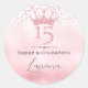 Pegatina Redonda Glamoroso Purpurina Rosa Tiara Quinceañera Cumplea