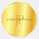 Glamour Falso Dorado Look Metálico Monograma Elegante Plantilla Pegatina Redonda Clásica.