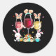 Pegatina Redonda Glasas de Vino Floral Semana Santa Conejo Alcohol