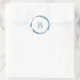 Pegatina Redonda Glitter de lámina moderno azul Monograma