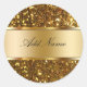 Pegatinas en monograma Glitzy con elegante patrón de purpurina de oro simulado impreso en la etiqueta y emblema en monograma de color dorado que usted puede personalizar con cualquier nombre, iniciales o mensaje. Las mejores etiquetas de monograma para agradecimientos, fiestas, etiquetas de regalo o etiquetas de nombre.