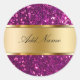 Pegatinas en monograma Glitzy con elegante patrón de purpurina púrpura impreso en la etiqueta y emblema en monograma dorado que usted puede personalizar con cualquier nombre, iniciales o mensaje. Las mejores etiquetas de monograma para agradecimientos, fiestas, etiquetas de regalo o etiquetas de nombre.
