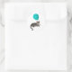 Un gatito de mesa gris sostiene un gran globo azul. Una imagen divertida para los regalos de cumpleaños o los amantes del gato.