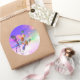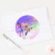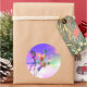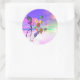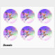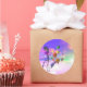 Pegatinas con mi arte digital de globos brillantes flotando en un cielo multicolor de azul, verde, naranja y rosa.