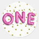 Pegatina Redonda Globos Rosa Brillante con Lunares Dorados Cumpleañ