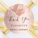 Un fondo de color rosa dorado con globos. El texto: Gracias está escrito con un estilo de letra manuscrita moderna grande. Personaliza y añade un nombre.
