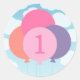 Pegatina Redonda Globos rosados modernos Niña bebé primer cumpleaño