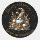 Pegatina Redonda Gnome De Navidades De Oro Y Negro