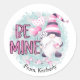 Un diseño caprichoso con un gnomo El día de San Valentín sosteniendo globos cardíacos con el dicho "Be Mine"