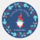 Pegatina Redonda Gnome for Holidays Modern Floral Wreath Blue