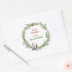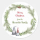 Esta divertida pegatina de Navidad al estilo escandinavo dice "Feliz Navidad" y de tu nombre familiar con escritura roja y verde, con extravagante arte acuarela nórdica de dos lindos gnomos y una guirnalda rústica de vegetación y conos de pino, con un fondo blanco. Perfecto para añadir un toque festivo de temporada a todas sus bolsas de regalo de invierno y paquetes de vacaciones.