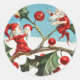 Pegatina Redonda Gnomes painting holly berries in the snow
