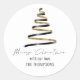 Pegatina Redonda Gold Black Artsy Tree Name Merry Christmas