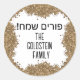 Pegatina Redonda Gold Glitter Happy Purim Hebrew Custom Name